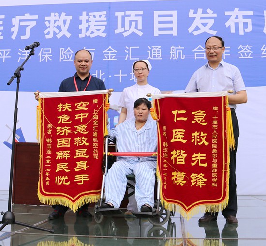 今年5月11日晚,郧西县的韩女士车祸重伤,生命垂危。通过直升机空中转运,仅18分钟就送至十堰市人民医院抢救。在十堰人医急诊与重症医学科、心胸外科、骨科、肝胆外科、麻醉科、心血管内科、呼吸内科等多学科全力抢救下,经过两次大手术,韩女士成功转危为安。
