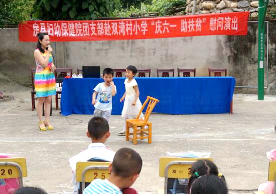 今日房县网讯 通讯员王雨 报道: 6月1日,县保健院团支部深入尹吉甫镇双湾村小学,举办“庆六一 、助扶贫”慰问演出活动。