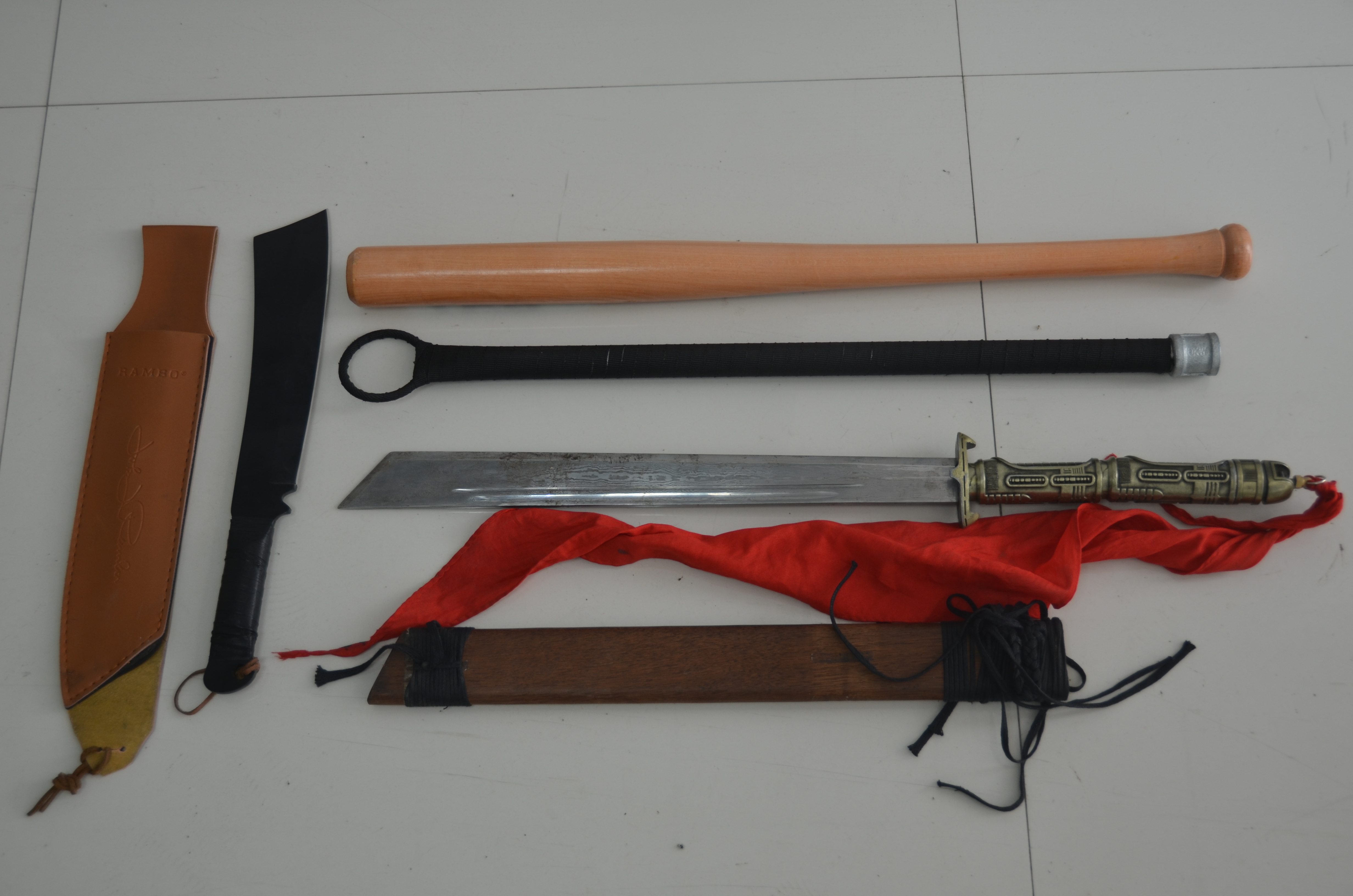 图为在现场收缴的管制刀具