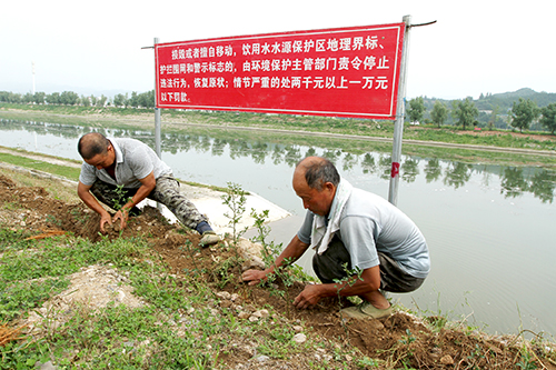 今日房县网讯 通讯员张启龙 报道:6月19日,技术人员在房县城区泉水湾水厂新水源区取水口河堤育植绿色植物隔离带。当地城区马栏河张家湾至军店段被列入一级饮用水源区,是城区30万人口的饮用水“水缸”。为确保水源区河水清澈干净,县水务局重拳治理,在沿河两岸安装监控探头,培植湿地植物带,绿化植物隔离墙,预防在饮用水源区放牧、洗衣、垂钓等污染水环境的事件发生。