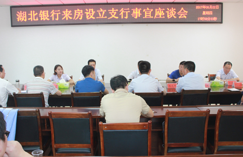 今日房县网讯记者向强 报道:6月22日,湖北银行十堰分行行长付长清一行,来我县考察洽谈在房县建立分行筹备事宜,并进行了选址。县委副书记、县长纪道清,县委常委、常务副县长肖大有,及财政、经信、金融办等相关部门负责同志出席座谈会。
