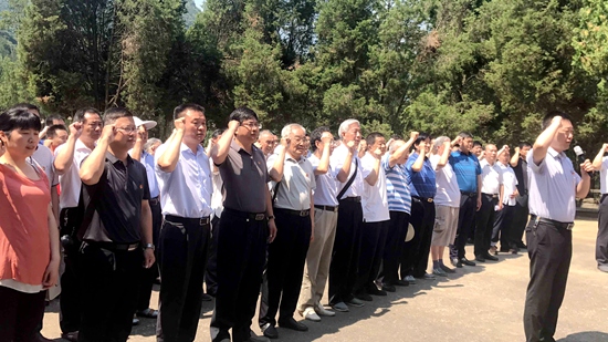 今日房县网讯 通讯员张佳佳 报道: 27日,县委常委、常务副县长肖大有同志以普通党员的身份和县政府办公室全体党员们一起,联合市政府办公室在职党员、退休老党员,在红军烈士纪念碑前开展以“缅怀红军烈士,传承红军精神”为主题的“庆七一”主题党日活动。