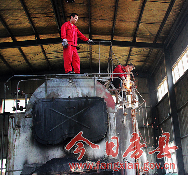 6月28日,县环保、质监等部门开展联合执法,对县内多家使用10蒸吨/时及以下燃煤锅炉的企业进行锅炉拆除情况检查。据了解,我县城区共有37台燃煤小锅炉,为加强大气污染治理,改善空气环境质量,年前县政府下发通知,要求在今年6月底前全部淘汰我县辖区内10蒸吨每时以下燃煤锅炉。截至目前,已有22家企业主动进行了拆除,对于本月底前仍未拆除到位的企业,我县将进行强制拆除。上图为久澳化工厂工人正在切割拆除燃煤锅炉。(毛俊杰 徐淼鑫 摄)