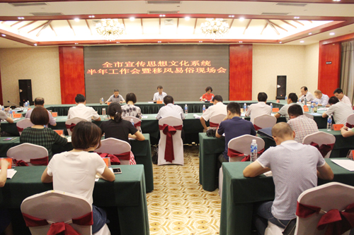 今日房县网讯 记者 王玮 报道:29日,全市宣传思想文化系统半年工作会暨移风易俗现场会在房县召开。市委常委、宣传部长周锋,县委副书记、县长纪道清,县委常委、宣传部长高勇,市直宣传思想文化单位负责人及各县、市、区宣传部长参加会议。