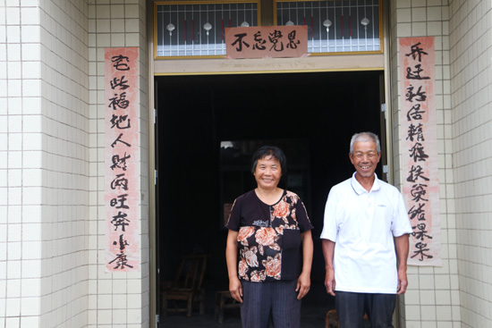 “乔迁新居精准扶贫结硕果,宅此福地人财两旺奔小康(横批:不忘党恩)”是55岁的卢玉华搬家时请人写的对联。直肠癌手术让她挂了4年尿袋,做不了重活,还时不时入院,病情让全家陷入赤贫。这让她“做梦都不敢想能建起小洋楼,门前还带个大广场”。