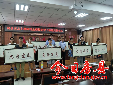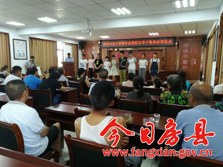 今日房县网讯 特约记者 赵礼江 报道:7月20日,来自回龙乡9名学子及亲朋好友,欢聚黑獐村喜事新办礼堂,同台庆贺金榜提名。这是该乡巩固人情新风成果,预防升学宴卷土重来的一次有益尝试。