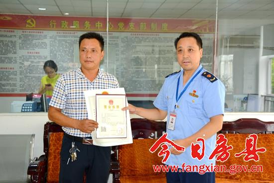 今日房县网讯 通讯员代涛 赵凯 报道: 8月1日上午,湖北雅韵装饰工程有限公司的负责人从县政务服务中心工商窗口领到了全县首张“多证合一”营业执照,这标志着我县“多证合一”登记制度改革的全面启动。