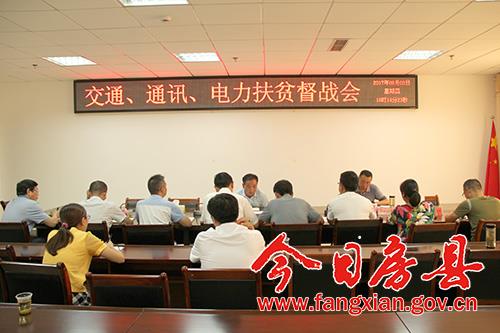 今日房县网讯 实习生杨珩 通讯员廖兴伟 报道:8月3日,我县召开交通、通讯、电力扶贫督战会,副县长丁选清及县交通局、县供电公司等相关部门负责人参加会议。