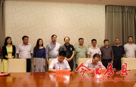 今日房县网讯 记者 吴宏强 报道: 29日,京粤港投资控股集团董事局主席李栋良一行来我县考察洽谈,并与县政府成功签约7个项目,总投资额达56亿元。县委书记蔡贤忠,县委副书记、县长纪道清,县人大常委会副主任李相明,副县长丁选清,县政协副主席张蕊先后陪同考察并出席签约仪式。