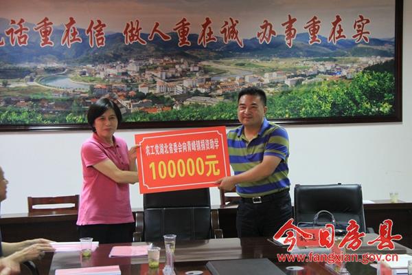 杨玉华代表农工党省委向青峰镇捐赠助学金