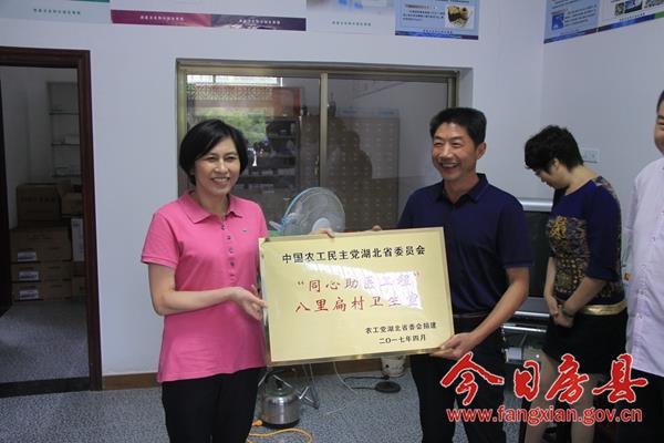 杨玉华一行先后来青峰镇八里扁村、峪坪河详细了解八里扁村精准扶贫工作和峪坪河村食用菌产业发展情况,并为八里扁村“同心助医”卫生室挂牌,走访了农工党湖北省委帮扶贫困户。在29日召开的座谈会上杨玉华一行还详细听取我县精准扶贫工作情况汇报,并向青峰镇捐资10万元用于资助困难大学生就学。