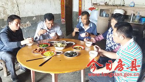 在贫困户张万清家中,帮扶干部仔细核对扶贫档案信息,认真宣讲各项精准扶贫政策,了解该户产业发展规划,交流思想,帮助解决面临的实际困难和问题,商定致富门路、强化脱贫措施,鼓励他增收致富。每位帮扶干部在入户过程中,都与包联户同劳动,并自己购买食材在贫困户家中帮助做饭,同吃一锅饭,在吃饭的过程中了解贫困户的思想动态,交流了解贫困户家庭情况,增进了感情,提升了满意度。