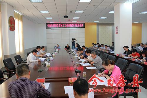 今日房县网讯 记者毛俊杰 报道:9月12日,我县召开全面治理拖欠农民工工资问题部门联席会议。县委常委、常务副县长肖大有出席会议并讲话。