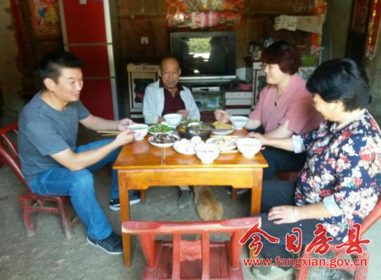 在局长彭辉的帮扶户柯尊如家,帮扶干部认真核对家庭信息,仔细分析了相关政策,制定了更加合理的发展规划,并和贫困户一起吃了顿团圆饭。饭桌上,扶贫工作队与农户一起拉家常,联络感情,大家其乐融融。