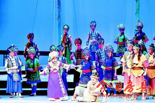 图为:昨晚,我省土家风情黄梅戏《妹娃要过河》为会演揭幕。(记者 倪娜 摄)