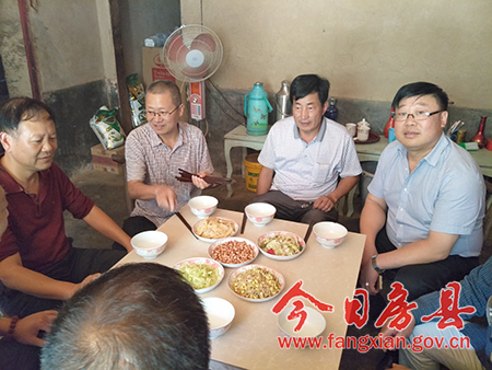今日房县网讯 通讯员 丁伟 欧阳萌 陈晓梅 报道: 日前,按照县委结对帮扶“八个一”活动的通知,县财政局驻高船村第一书记张鹏为进一步落实帮扶工作,深入贫困户彭满成家,了解家庭、生产生活情况,并自带食材,亲自动手,和彭满成一家一起吃农家饭,和贫困户增进了感情。