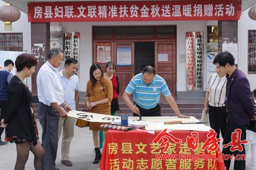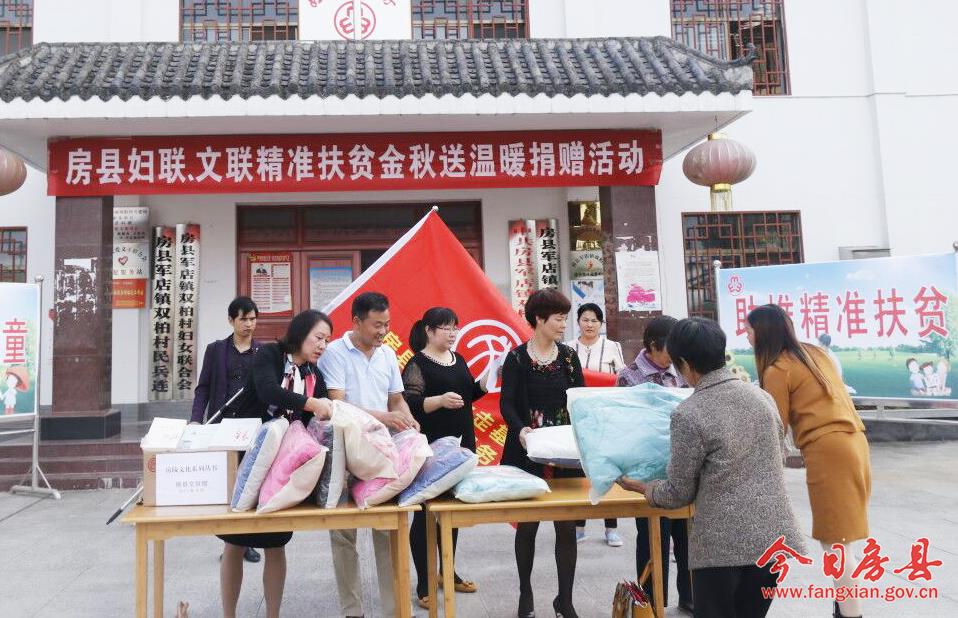 今日房县网讯 通讯员 张立林 报道: 9月21日,县妇联、县文联组织干部职工来到军店镇双柏村开展精准扶贫金秋送温暖活动,以实际行动贯彻落实县委“八个一”指示精神。9月初,县委精准扶贫“八个一”活动倡议发出后,县妇联、县文联十分重视,对这项活动进行了专题研究,并制定了落实计划。当日在金秋送温暖的活动中,县妇联为双柏村送去了全新衣物600多件;县文联为该村送去了房陵文化丛书,文艺志愿者现场为当地农户送上“家和万事兴”等书法作品。据了解,县妇联、县文联前期还组织开展了“共吃一顿农家饭”等活动。