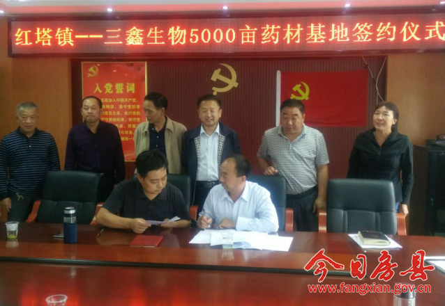 今日房县网讯 通讯员赵先华 报道:9月25日,红塔镇人民政府与三鑫生物5000亩中药材基地签约仪式举行。县政协副主席邓华明出席签约仪式。