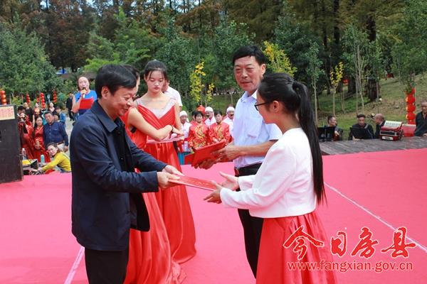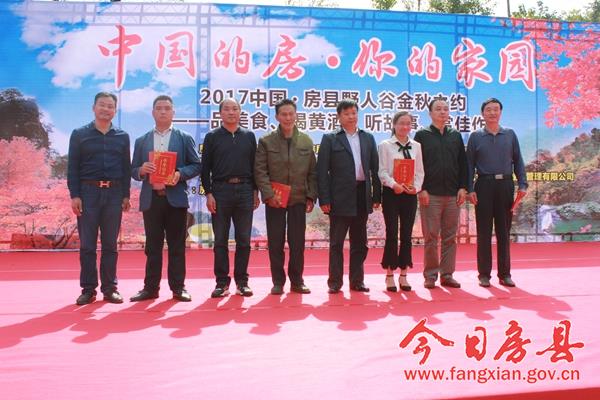 今日房县网讯 记者 陈锐 报道: 品美食、喝黄酒、听故事、赏佳作。28日,“中国的房县·你的家园”野人谷金秋之约系列活动在位于野人谷镇杜川村的云盘山庄景区成功举办。县委常委、政法委书记祁国鹏,县人大常委会副主任谢永翔、县政协副主席张蕊出席活动,并分别为获奖选手颁奖 。