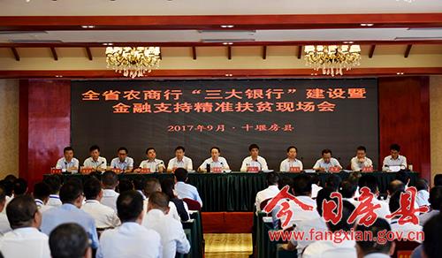 今日房县网讯 通讯员欧阳经纬 报道:9月28日,全省农商行“三大银行”建设暨金融支持精准扶贫现场会在房县召开。省联社党委书记、理事长李亚华主持会议,十堰市委常委、副市长王海丰出席会议并致辞,十堰市政府金融办主任彭直,房县县委书记蔡贤忠,县委常委、常务副县长肖大有出席会议。