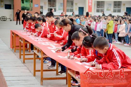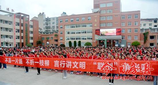今日房县网讯 通讯员陆晓月 张军 报道: “讲文明话,行文明举,做文明人;讲究卫生,保护环境……从自我做起、从小事做起,为助力房县创建全国文明城、国家卫生县城、国家生态县城、省级环保模范县城、省级森林县城”贡献力量!”10月9日早晨,房县实验小学近4000师生在操场隆重举行“养成良好习惯,助力五城联创”誓师大会。