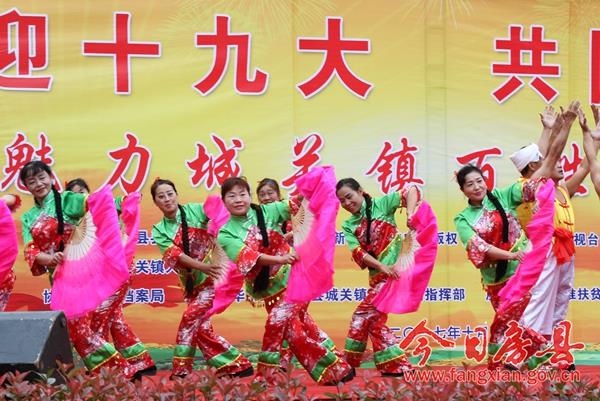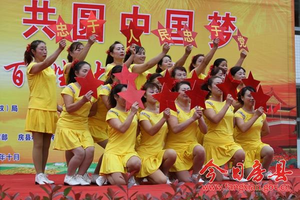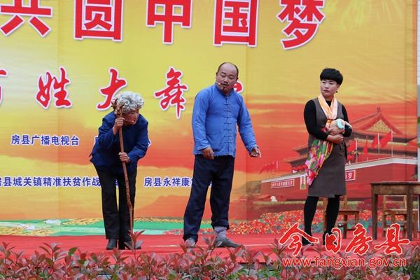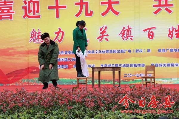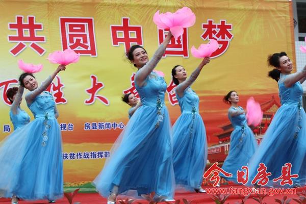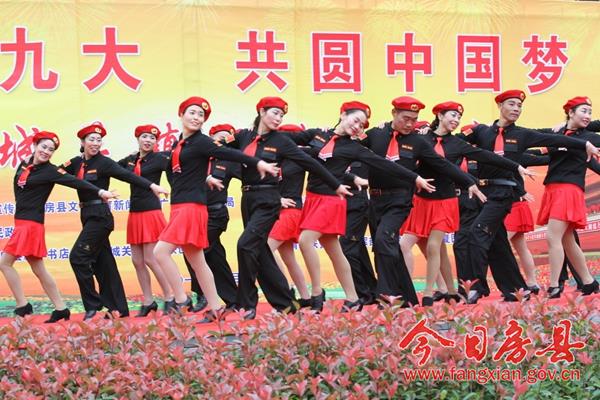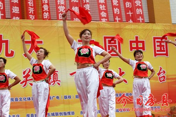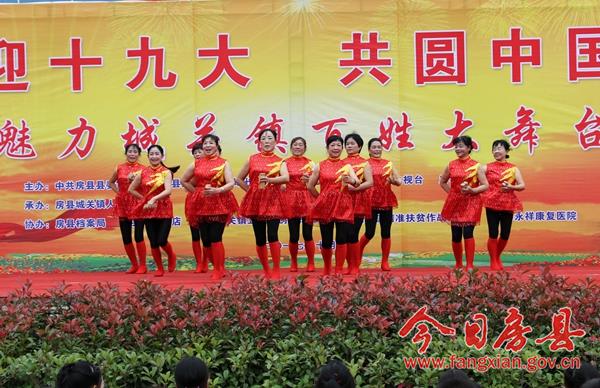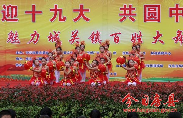 本次活动以“喜迎十九大 共圆中国梦”为主题,旨在以文艺活动的方式展示党领导人民群众努力奔小康的艰难历程和全县经济社会发展成果,传承和弘扬房县优秀民间文化,宣传社会主义核心价值观,喜迎即将召开的党的十九大。来自城关镇各村居、企业,红塔镇和保康县尧治河村文艺团体,带来了音乐剧、舞蹈、小品等20个精彩节目,为当地广大干部群众奉上了一场精彩的文化节目。 演出在气势磅礴的《威风锣鼓》中拉开帷幕,来自花宝小学的表演队用铿锵激昂的锣鼓敲出全县人民奋勇拼搏创造美好生活的热情和激情。舞蹈《说唱中国红》、舞蹈《鼓动中国》、舞蹈《祝福祖国》、国标舞《再唱山歌给党听》、歌曲《九儿》、歌曲《红歌串烧》,生动地表达了社会各界群众对党的浓浓恩情,对祖国的美好祝愿和祝福;广场舞《请到房县来》、音乐快板《如今城关在发展》、歌曲《山歌串烧》,在展示房陵文化魅力的同时,展现了全县人民团结奋进努力建设小康生活的坚定信心和决心;小品《婆婆也是妈》、《赌徒夜归》、《老有所养》,用一个个妙趣横生、接地气的故事潜移默化的向大家宣传了社会主义核心价值观;舞蹈《同在蓝天下》、《自由飞翔》、《花儿朵朵向太阳》在展示小朋友们天真灿烂天性的同时,也展现了社会主义接班人良好的精神风貌;三句半《医务工作赞》展现了新时代医务工作者良好的职业素养和精神风貌;演出在老城社区带来的经典红歌舞蹈《山丹丹花开红艳艳》中完美谢幕。