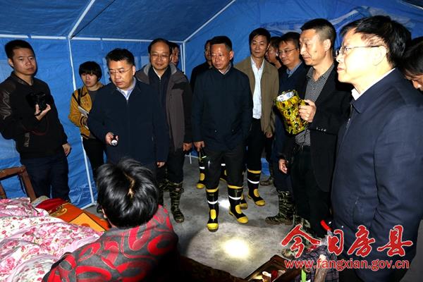 童道驰一行再次深入受灾影响区和转移灾民安置点,实地查看了山体裂缝、灾害影响区村民转移安置情况等,了解我县各有关部门针对这一地质灾害的应急处置方法和应对再次降雨后抢险救灾工作情况,并连夜召开紧急灾情商讨会。