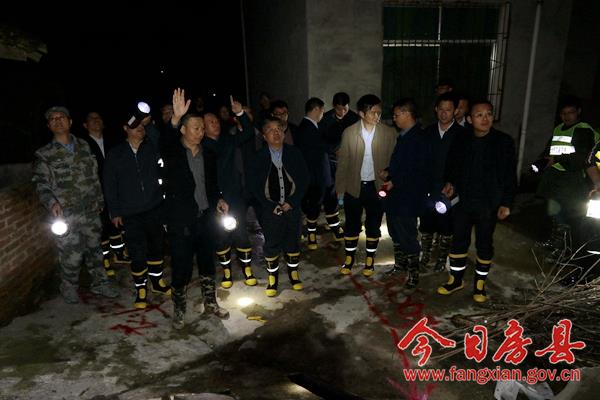 今日房县网讯 记者 陈锐 报道: 受连续阴雨天气影响,10月11日,白鹤镇伏溪村三组发生山体滑坡的危险,涉及辖区内90多户群众,据气象部门预测未来3到4天我县还将持续受降雨天气影响。牵挂着房县的灾情的副省长童道驰一行带领省政府有关部门于10月14日晚,再次来到白鹤镇伏溪村察看山体滑坡灾情,指导地质灾害抢救治理工作。市人大常委会党组书记、常务副主任张歌莺,市委常委、常务副市长、宣传部长周锋,副市长吴烨,县委书记蔡贤忠,县委副书记、县长纪道清,县委副书记王家波,县委常委、常务副县长肖大有,县委常委、县委办主任付必久,副县长董诠闻一同参加救灾工作。