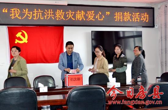 今日房县网讯 通讯员 余帆 林鹏报道:13日,房县审计局开展“我为抗洪救灾献爱心”捐款活动,全体干部职工将忠党爱民、为民服务的真情转化为抗洪救灾募捐的实行行动,用有限的力量,为受灾群众传递无限的爱心,为抗洪救灾和灾后重建作出应有的贡献。