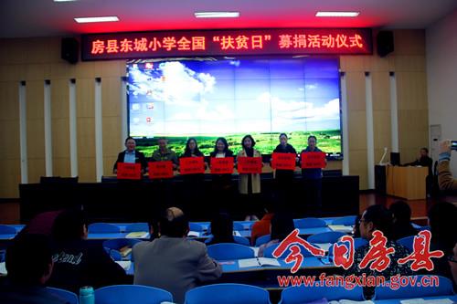 今日房县网讯 通讯员李英报道:10月18日上午8点整,正值“十九大”召开之际,房县东城小学的教师们早早的齐聚该校阶梯教室,举行“全国扶贫日”为房县灾区人民祈福、为房县灾区人民“爱心捐款”活动,向房县灾区人民伸出援助之手,贡献一份爱心,献礼“十九大”。