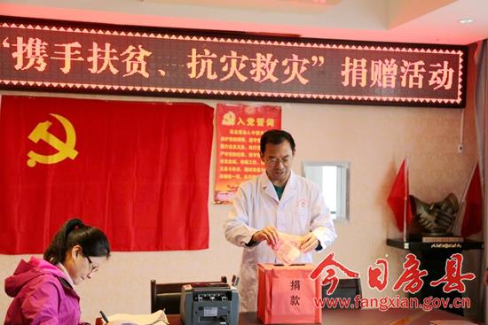 今日房县网讯 通讯员何曼 报道: 10月14日,县保健院组织干部职工开展扶贫赈灾捐款活动,为灾区的灾后重建贡献一份力量。