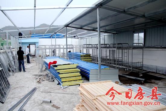 在白鹤镇石堰河初中顶楼平台上搭建280平方米的临时板房,以保障学生住宿;在教学楼后搭建150平方米挡阳篷,供学生洗碗用。在白鹤镇中心幼儿园顶楼平台上搭建420平方米的临时板房,安排学生住宿;在场地搭建50平方米的活动板房厕所和30平方米活动板房厨房,共预计38万元。