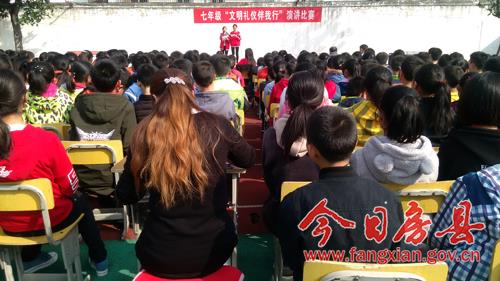 今日房县网讯 通讯员 余清湖 报道 “同学们,养成良好文明礼仪习惯是你人生成功的基石……”,10月30日下午,房县城关四中七年级学生“文明礼仪伴我行”演讲比赛正如火如荼的进行着。