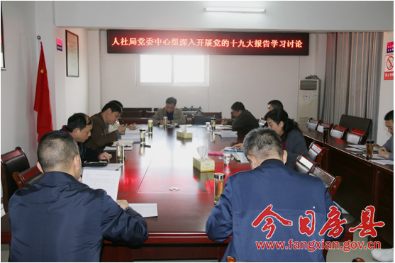 今日房县网讯 通讯员 金艳 肖晶晶 报道: 10月31日上午,市人社局召开党委中心组理论学习(扩大)会议,专题学习十九大报告精神。局党委书记、局长李文海主月会议,党委班子成员参加会议并参与了集体学习讨论。