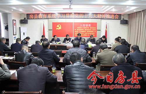 今日房县网讯 通讯员 付培文 报道: 11月18日,房县教育系统学习贯彻党的十九大精神推进会在教育局三楼会议室举行。房县教育局班子成员,各科室及二级单位负责人,各乡镇中心学校校长参加会议。