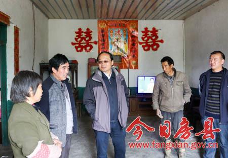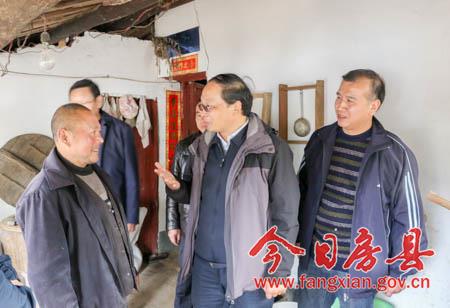 当天下午,蔡贤忠一行经渡船过堵河,来到姚坪乡黄坪村,查看易地扶贫搬迁建设进展和黄姜产业发展情况。在该村8组贫困户刘兴福家中,蔡贤忠进厨房、入卧室,询问家庭人员构成及收入支出等基本情况,了解致贫原因和帮扶措施。
