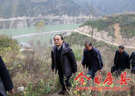 蔡贤忠一行登上堵河岸边山腰看望贫困户