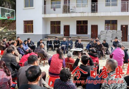今日房县网讯 记者 吴宏强 报道: 21日至22日,县委书记蔡贤忠来到大木厂镇、姚坪乡,宣讲党的十九大精神,调研灾害重建和精准扶贫工作。他强调,要以党的十九大精神为指引,扎实做好灾后重建,聚焦“五新”、“三深”冲刺精准扶贫“百日攻坚”,确保全年工作收好官、结好尾。县委常委、政法委书记祁国鹏,县人大常委会副主任丁杰,县政协副主席袁堂珍先后参加调研。