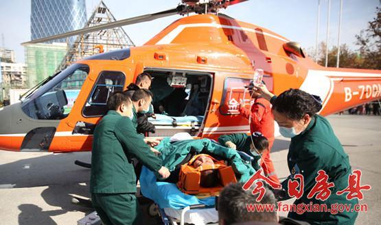 上午11:08分,直升机降落在安家乡中心学校,一辆白色救护车疾驰而至,把胡庆树老人转运至直升机上。搭载上病人的飞机再次起飞迅速返航。而就在空中转运过程中病人出现呼吸窘迫,急救人员立即使用机载急救设备进行抢救。