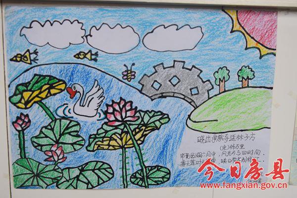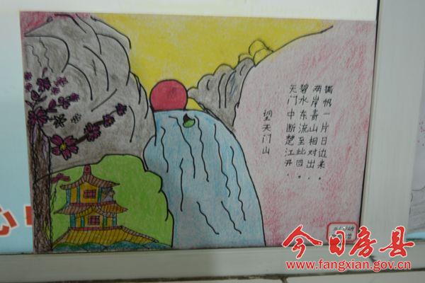 据悉,最近一周是房县实验小学“诗配画”展示周,同学们把自己精心绘制、充满诗情画意的作品在各班宣传栏展出。不少学生的作品构思独特,富于诗意,将诗与画融为一体,达到了“诗中有画、画中有诗”的艺术境界。