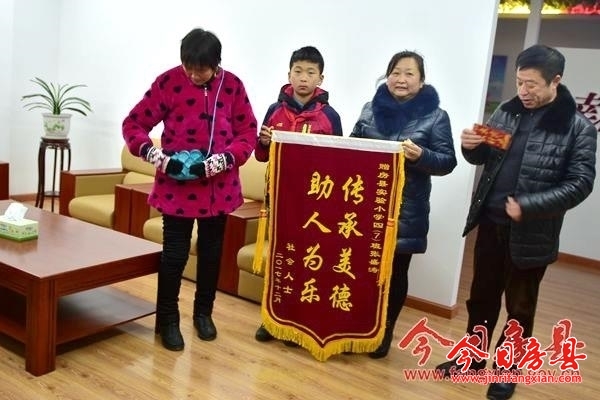今日房县网讯 通讯员陆晓月 报道: 12月27日一早,房县实验小学的接待室里发生了一幕感人的情景:一位姓全的先生手持一面写有“传承美德,助人为乐”的锦旗,向该校四(7)班助人为乐学生张盛涛表示感谢。