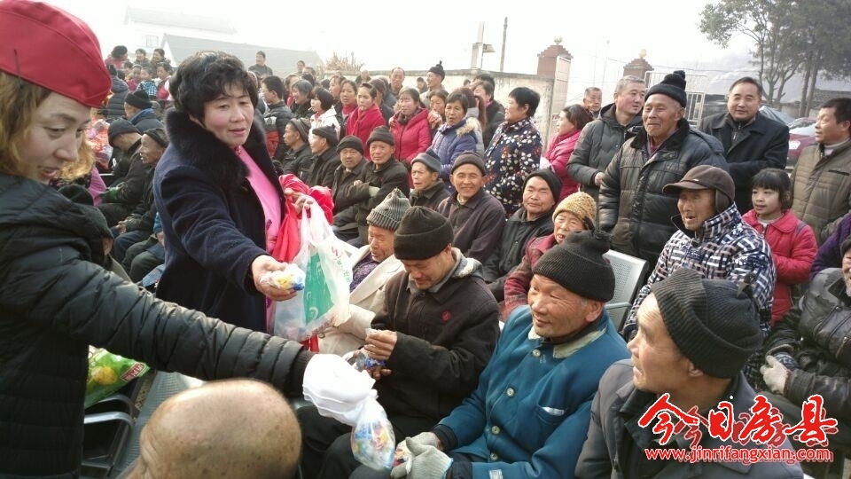 活动现场,文艺队员们为五保老人们分发了糖果,卫生院举行了免费体检,邮政局为福利院捐赠了米、食用油等物品。