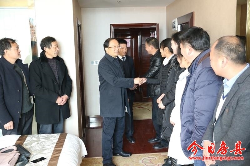 今日房县网讯 记者 陈锐 报道: 12月23日,县委书记、县人大常委会主任蔡贤忠,县委副书记、县长纪道清,县委副书记王家波,县政协党组书记、主席徐锦凤,县人大常委会党组书记、常务副主任高明哲,县委常委、纪委书记王宇星,县委常委、县委办主任付必久等到出席房县第十八届人大二次会议代表驻地看望各位代表。