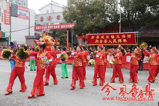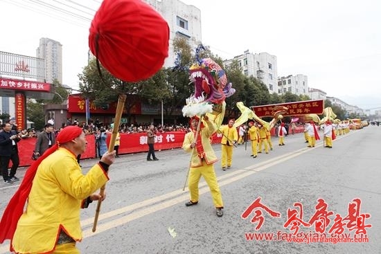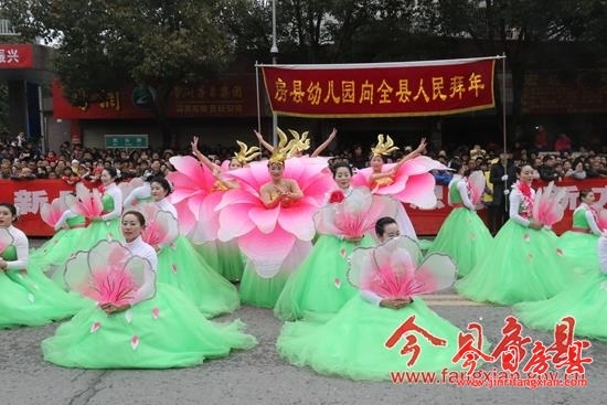 一大早,四面八方的群众涌向街头翘首以盼。上午八点四十分,巡游活动在白须老龙的开路中开始,精美的巨龙时而腾空跃起,时而盘旋游走,舞出了房县人的激情与奋进。“不忘初心,牢记使命,高举习近平新时代中国特色社会主义思想伟大旗帜”、“聚焦精准扶贫,共建小康社会”的标语口号振奋人心;舞龙、舞狮、划旱船、扭秧歌、腰鼓等民俗表演独具特色、惟妙惟肖,你方唱罢我登场;伴随着《共圆中国梦》《爱我中华》《美丽中国》等一曲曲动人心弦的音乐,与十九大精神、精准扶贫、“忠孝礼义信简俭平顺和”房县十字主流价值观、诗经文化等相结合的现代歌舞演出精彩绝伦。欢快的锣鼓、悠扬的号哨,展示了房县人民决战脱贫攻坚、建成全面小康的坚定决心;飞舞的巨龙、翻腾的彩狮,彰显了干部群众同奔小康路、共筑中国梦的满腔豪情。