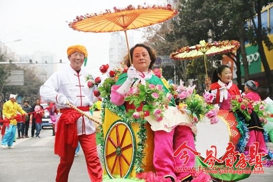 表演队伍从唐城广场出发,沿西河大桥、房陵大道、武当路巡游。一路欢声笑语,一路喜庆随行。巡游队伍所到之处,引得广大群众前呼后拥,夹道欢迎,一项项不同特色的民俗文化表演让现场观众欢呼不断,众多群众一边观看一边用手机拍照、录像,记录下这一热闹喜庆的场面。