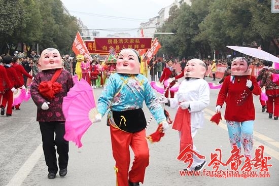 今日房县网讯 记者赵爱平 田兰兰 报道: 金鸡辞旧岁,玉犬乐尧天。2月28日,房县县城万人空巷,人声鼎沸,变成了一片欢乐的海洋。由县委、政府主办的“贯彻十九大精神·决胜脱贫攻坚2018年正月十三民间文艺大巡游”活动在这里精彩上演,吸引了数万市民和外地游客簇拥街道两旁观看。