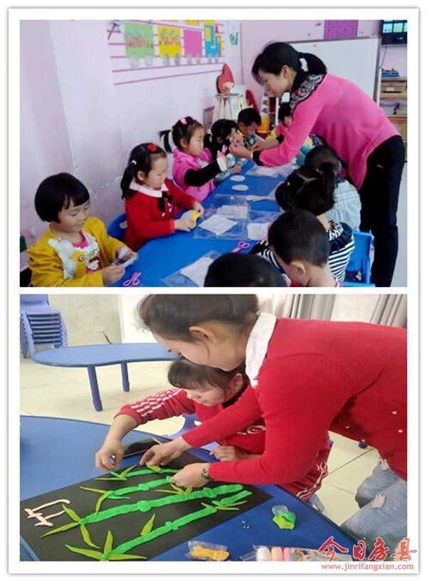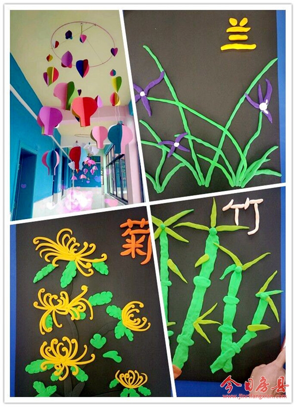 今日房县网讯 通讯员散静娇 杨晓梅 报道: 走进军店镇中心幼儿园,墙壁上一幅幅由教师们亲手绘画的壁画格外引人注目。室内更是别具一格,或是师生用七色彩条粘成的苍松翠柏,或是用衣服的边角废料粘成的洋娃娃,或是用水彩绘制的含苞欲放的荷花和栩栩如生的大熊猫……这些装饰品的原材料大多都是废旧物品,但看起来却不失精美,把整个幼儿园妆点得富有诗意且有内涵。前来送幼儿上学的家长对这些作品纷纷伸出大姆指,称赞美观环保又经济。
