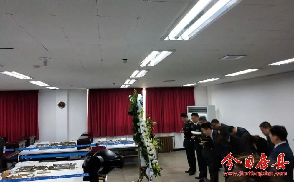 “烈士们,我们来接你们回家了,”一片肃穆之中,中国民政部副部长高晓兵深情呼唤。中韩双方代表团人员面向烈士遗骸鞠躬致敬。