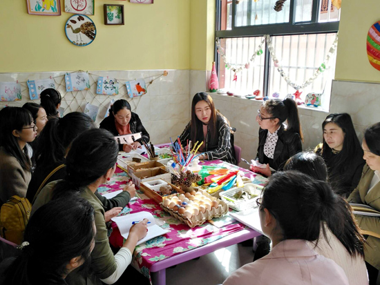 在军店镇中心幼儿园,总后六一幼儿园幼教团队参观了幼儿园户外活动场地,实地查看了学校游戏活动室、美工区和益智区等,曹梅专家重点对“幼儿园区域活动”与大家进行了研讨。面对西片区众多幼教老师提出的“区域环境材料收集及投放困难”及“幼儿进区活动的互动性不强,感觉玩不起来”这些问题,曹老师一一进行详细指导。在青峰镇中心幼儿园,幼教团队专家赵萍展示了一节优秀综合活动课。