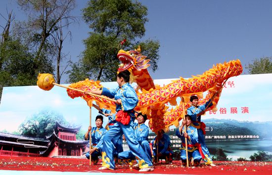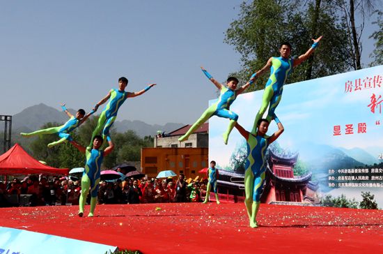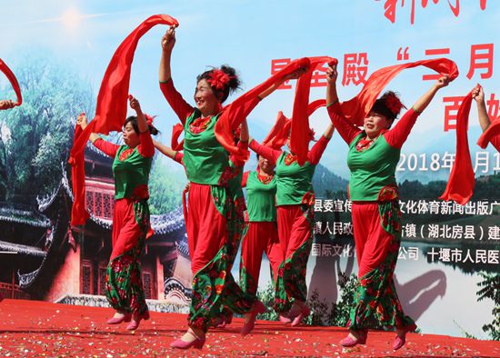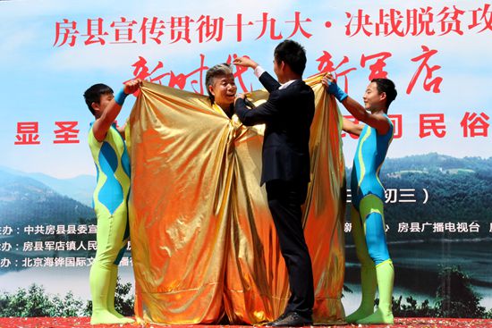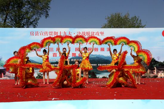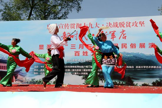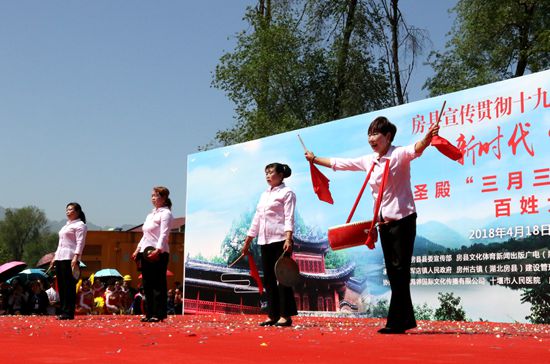今日房县网讯 记者 赵爱平 高书文 杨珩 报道: 4月18日,由房县县委宣传部、文体新广局、新闻中心、广播电视台、文联主办,军店镇人民政府、房州古镇(湖北房县)建设管理有限公司承办的显圣殿“三月三”民间民俗展演百姓大舞台活动在显圣殿文化广场举行。县政协主席徐锦凤、县人大副主任谢永翔、副县长宋秀柏出席活动,并同数千群众一同观看了民俗展演。